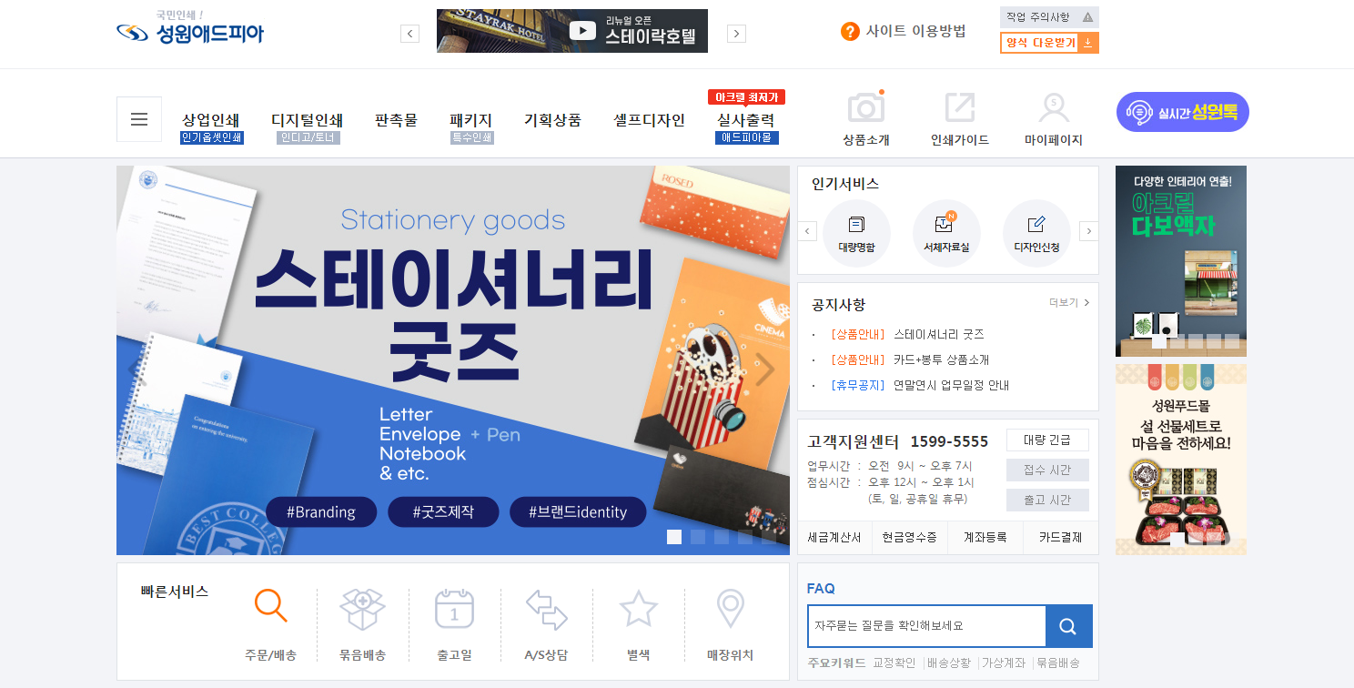 명함, 봉투, 전단, 스티커, 홍보물(브로셔, 포스터, 책자, 홀더), 안내장(청첩장, 초대장, 상품권, 연하장), 서식지, 떡메모지, 패키지, 배너, 현수막, 아크릴, 소량 굿즈를 주로 제작