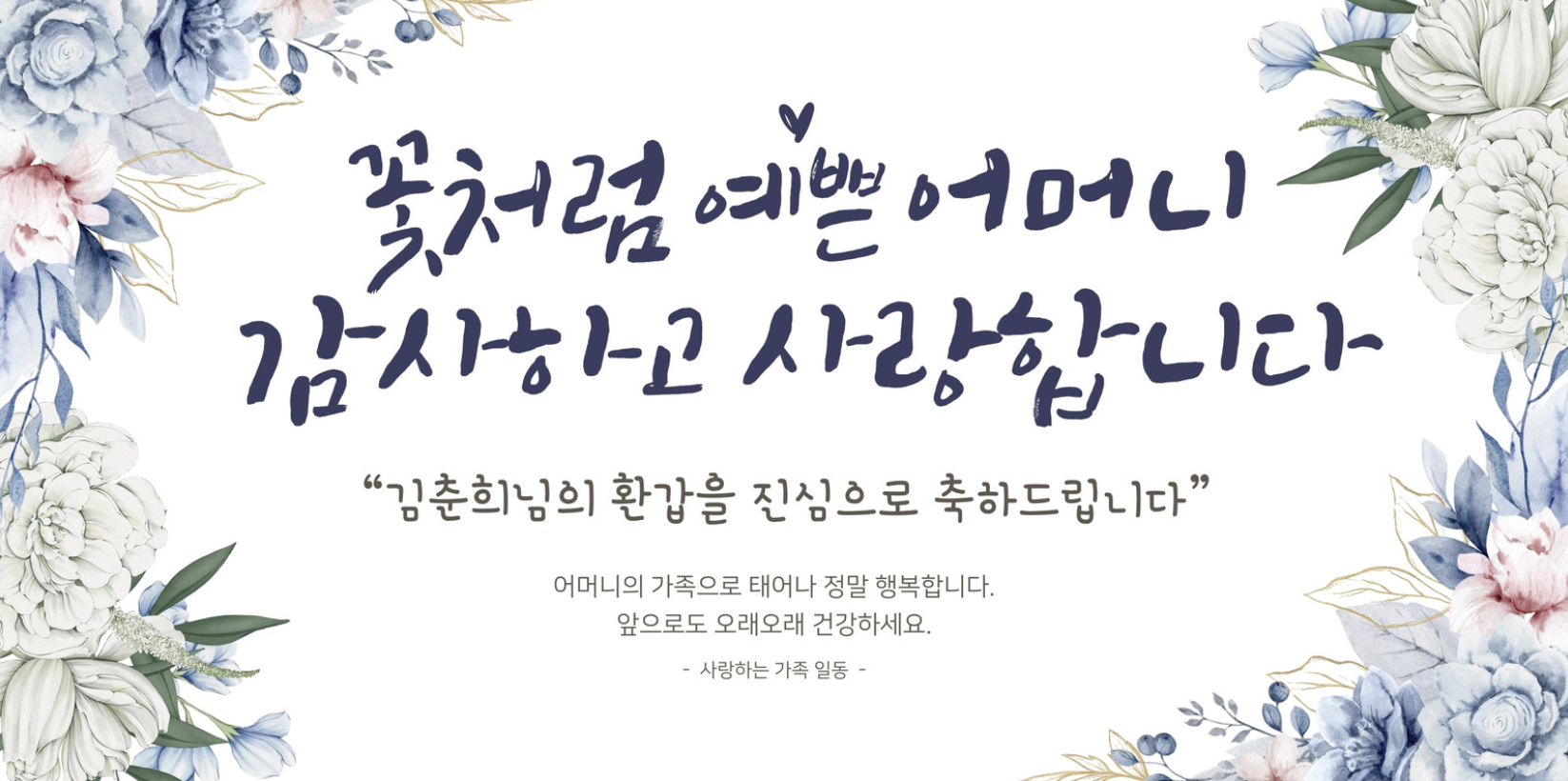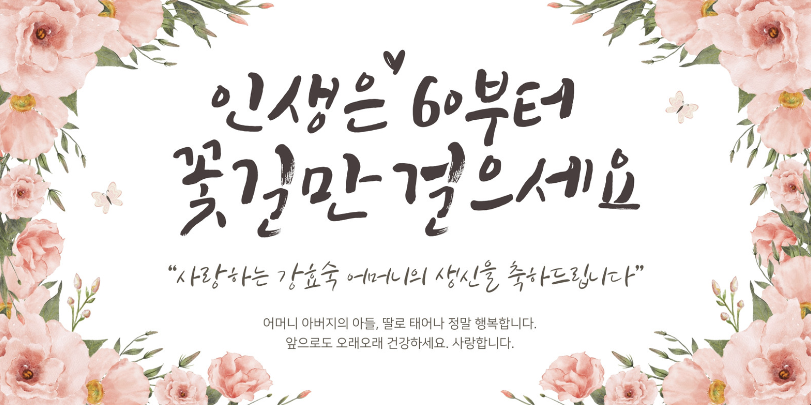 현수막 문구 : 환갑이면 어때 이렇게 예쁜데