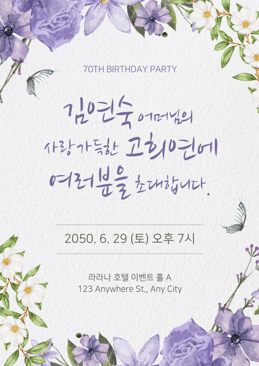 08. 흰색 보라색 꽃 감성적인 어머니 고희연 초대장 세트 모바일